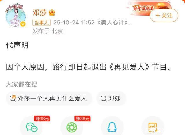 作者/zeze 编辑/阿笔 运营/狮子座 呃,婚姻纪实观察类真人秀,能一个人参加吗? 听起来是有些离谱,但确实发生在《再见爱人》第五季身上了。 10月23日,节目组官微发博称新一期延期上线,第二天节目是正常播出了,但嘉宾路行在经历“行贿”风波后,宣布退出节目。连夜剪掉路行的镜头后,节目时长缩短了,原本三对嘉宾变成两对半了……